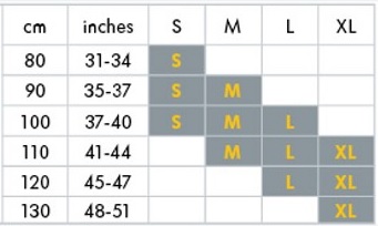 Tableau de taille des bandeaux en fonction du tour de taille :