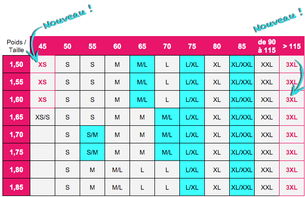 Si vous êtes sur une double case, choisissez la taille supérieure si vous avez un élément "fort" : épaules, poitrine, hanches ...