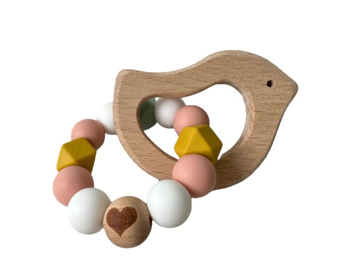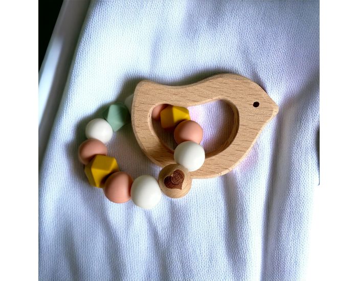 Ce petit hochet oiseau, adapté aux petites mains de bébé :
