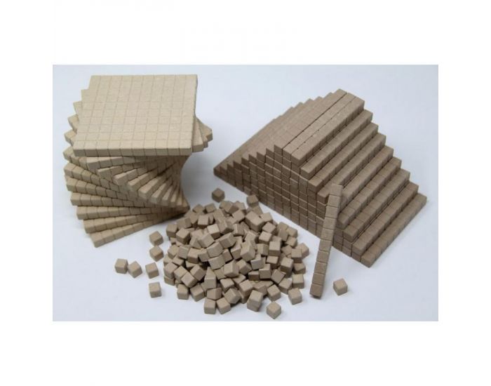 Ce matériel extraordinaire permet de compter en base 10. Il permet aussi de visualiser les différentes quantités, un, dix, cent et mille.