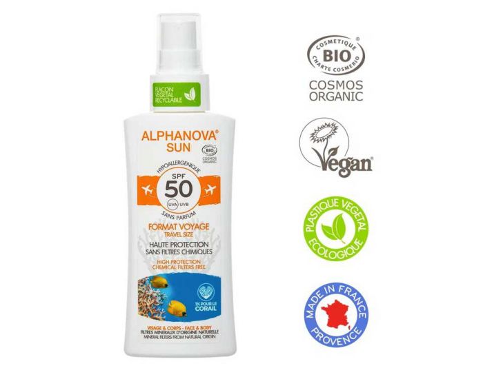 Ce Spray solaire certifié biologique visage et corps vous offre une très haute protection SPF 50+ UVA UVB. Adapté aux forts ensoleillements.