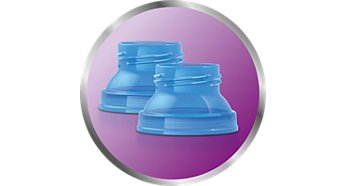 • Les couvercles et adaptateurs bleus sont réutilisables à volonté. Stérilisez-les avant chaque emploi.