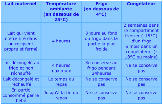 Petit mémo pour la conservation de votre lait maternel :