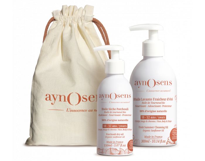 Composé de l'huile lavante Fraîcheur d'été ado et de l'huile sèche Patchouli ado, ce rituel quotidien constituera la base de leur autonomie en terme d'hygiène, en toute sécurité, en prévenant les risques de problèmes cutanés.