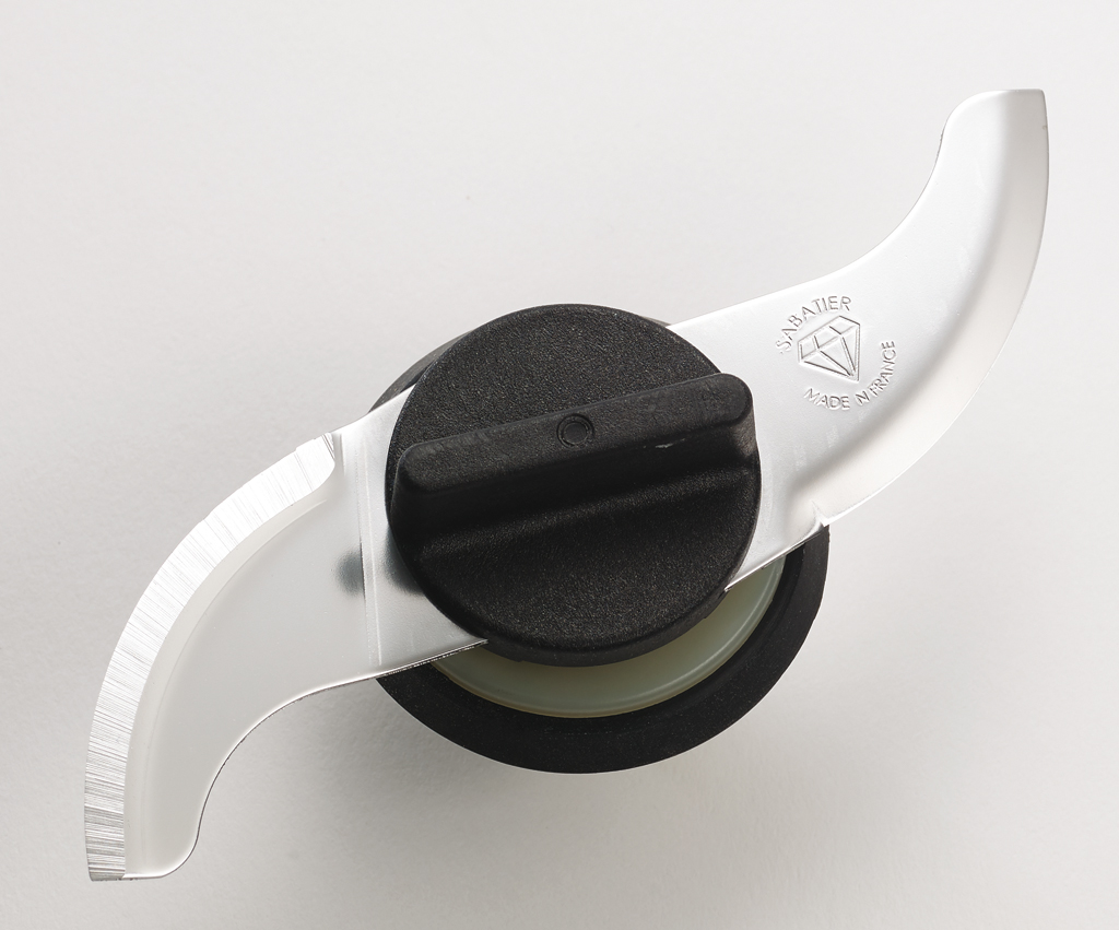Avec sa nouvelle lame inox double inclinaison, il est facile d’obtenir différentes textures, il suffit d’ajuster le nombre de pulsions et d’intégrer plus ou moins de jus de cuisson. Le double niveau permet également aux aliments de ne pas se coincer pendant le mixage. Cette nouvelle lame est brevetée et fabriquée chez Sabatier Diamant. Coutelier de cuisine haut de gamme à Thiers, il est la référence des couteaux professionnels à l’usage des cuisiniers et des bouchers.