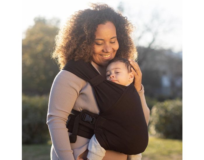 Fournit à la fois l'enveloppement cocon d'une écharpe et la facilité d'un porte-bébé.