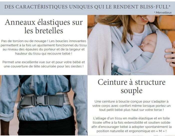 L'innovation du Porte-bébé hybride Boba Bliss Gris : Une combinaison parfaite d'un porte-bébé physiologique et d'une écharpe extensible.