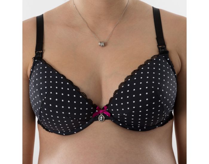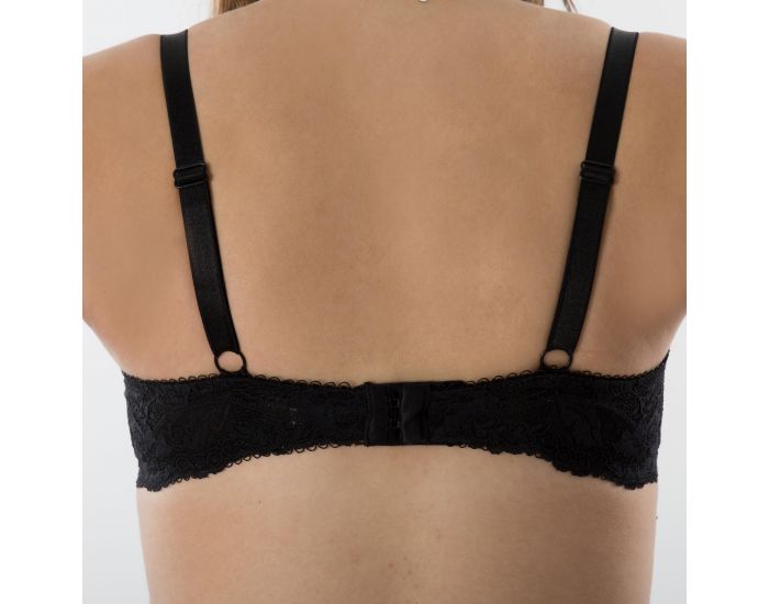 Réglable au dos grâce à des agrafes 3 positions, il vous permettra de prendre une taille de bonnet et vous accompagnera ainsi pendant toute votre grossesse et période d'allaitement. De discrets clips d'allaitements positionnés sur les BRETELLES, ÉLASTIQUES ET RÉGLABLES, vous permettront d'allaiter votre bébé très facilement.