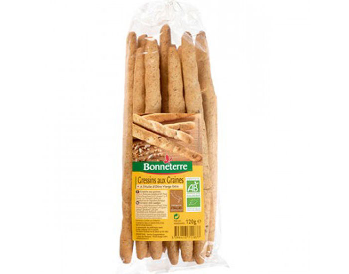 Les Gressins Olive Romarin Bonneterre sont de délicieux petits bâtonnets incorporés d'olive et de romarin.