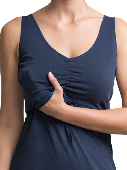 Cette robe est conçue pour la femme enceinte puis pour l'allaitement maternel grâce à un accès discret au sein via le pan à soulever