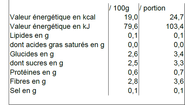 Tableau des Valeurs Nutritionnelles :