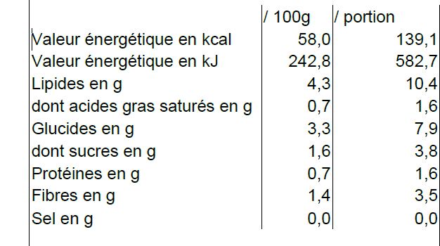 Ingrédients : Légumes*² (courges*² 31%, carotte*² 23%)*, bouillon de cuisson, quinoa* 7% de l'Earl Cedelann à Chateau Landon, huile d'olive* du Moulin Oliflix.