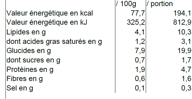 Tableau des Valeurs Nutritionnelles :