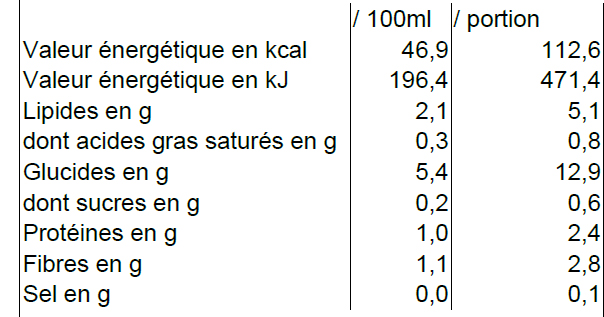 Ingrédients : eau de cuisson, pomme de terre nouvelle*², blette*², huile d'olive*.