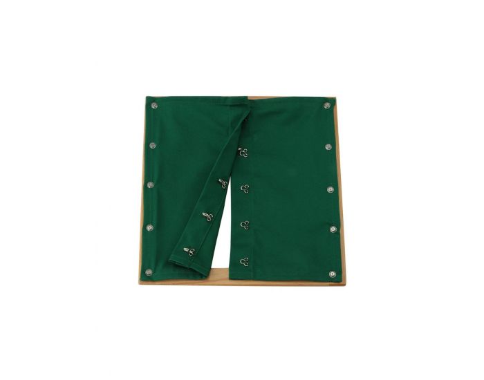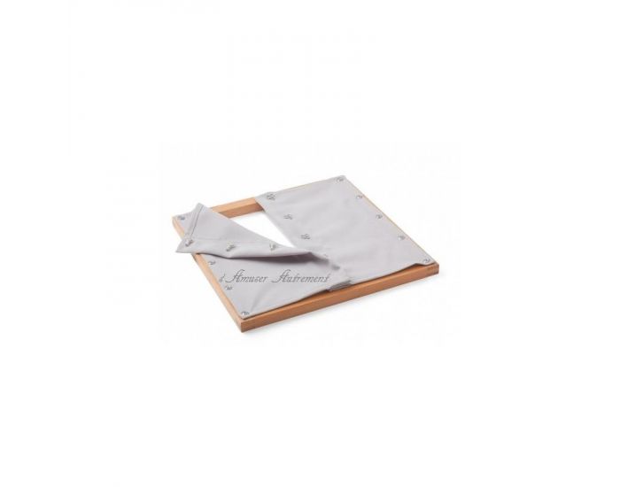 Fidèle à la pédagogie Montessori, les deux rectangles de tissu sont fixés sur les 2 cotés du cadre (et non pas enroulés autour!)