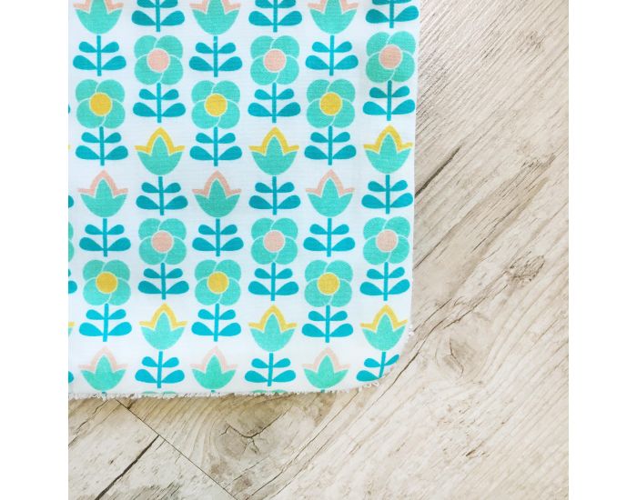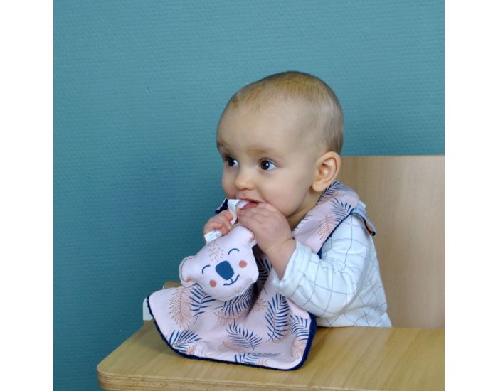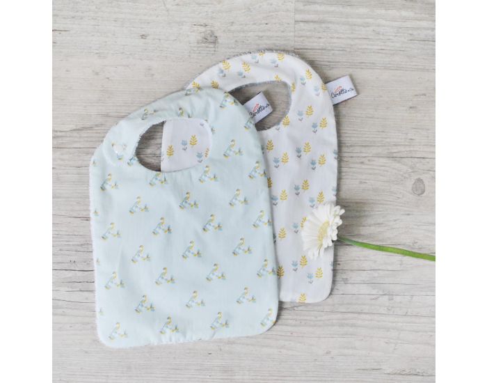 Le bavoir dispose d'un côté coton imprimé avec des encres à l’eau bio et un coton en eponge 100% coton bio (certifiée GOTS).