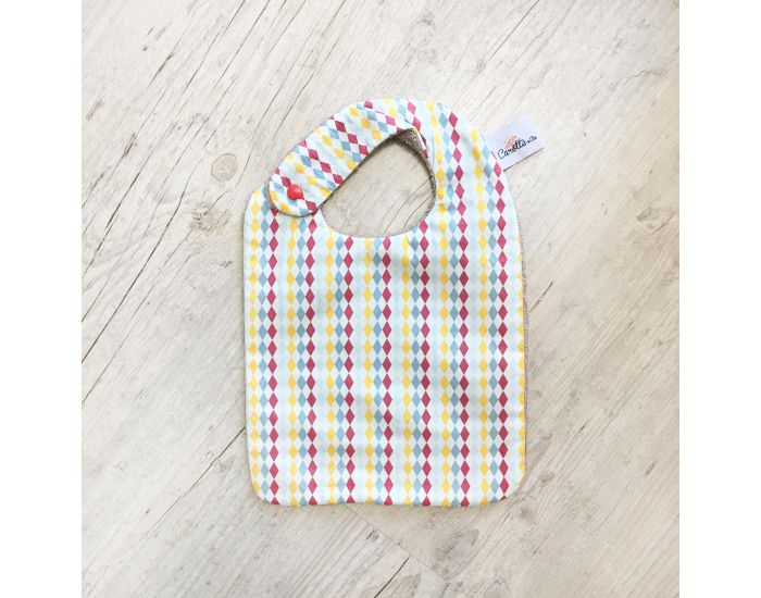 Le bavoir dispose d'un côté coton imprimé avec des encres à l’eau bio et un coton en eponge 100% coton bio (certifiée GOTS).