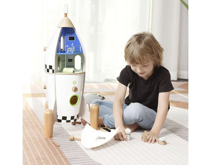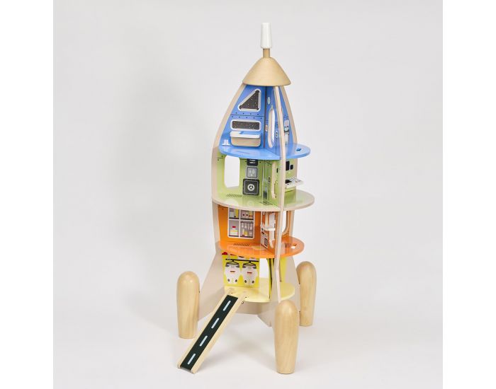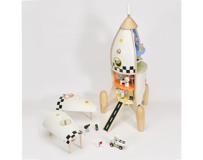 À la fois jeu de construction et jeu d'imagination, cette superbe fusée en bois est composée de douze pièces différentes : chambre, salle de contrôle, laboratoire...