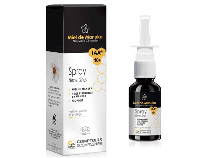 Retrouvez les propriétés du miel de manuka IAA10+ associées à l'huile essentielle de manuka sauvage dans le Spray Nez Miel de Manuka IAA10+ - 15 ml Comptoirs et Compagnie.