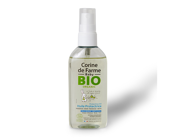 L'huile protectrice Corine de Farme Baby, nourrit la peau sèche et sensible de bébé dès la naissance.