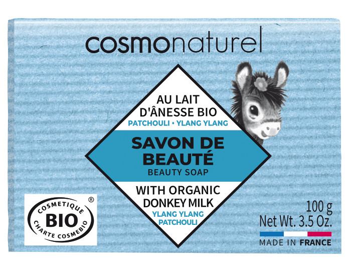 Le Savon au Lait d'Ânesse - Patchouli-Ylang ylang Cosmo Naturel concentre tous les bienfaits du lait d'ânesse dans un pain de savon à usage quotidien et familial. Les soins au lait d'ânesse conviennent particulièrement aux personnes allergiques ou à la peau sensible et fragile. Ils sont particulièrement adaptés à la toilette des tout-petits et dans enfants.