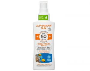 Le Spray Solaire Bio ALPHANOVA SUN® indice 50 assure une haute protection contre les UV. Cette formule est naturelle, certifiée BIO COSMOS par ECOCERT.
