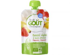 La Gourde Brassé Végétal Avoine Fraise et Banane Good Goût est un brassé onctueux à la boisson d'avoine, de bonnes fraises et de délicieuses bananes, un peu de farine d'avoine, une goutte de jus de citron, et rien d'autre !