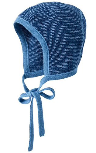 Le Bonnet Bébé en Laine Mérinos avec Lacet Bleu Disana gardera bien au chaud la tête et les oreilles de votre nouveau-né. Deux lacets permettent de maintenir le bonnet bien en place.