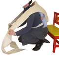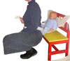 Placez le centre du Mama Koala sur un canapé ou sur un large fauteuil. Posez votre bébé dessus en lui passant les sangles de la taille par dessus ses jambes.