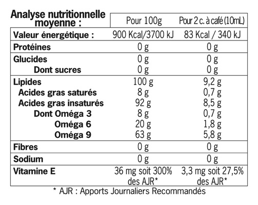 L'Huile Végétale de Colza - 50 cl Emile Noël est une huile à avoir chez soi, car en plus de sa saveur, elle contient les trois familles d'Oméga (3,6 et 9) ainsi que de la vitamine E. C'est une huile première pression à froid, au goût prononcé et caractéristique avec de petites notes de chou.