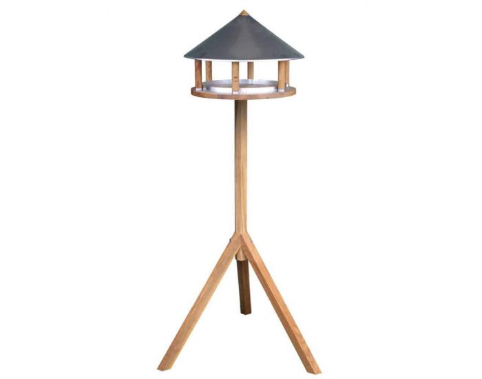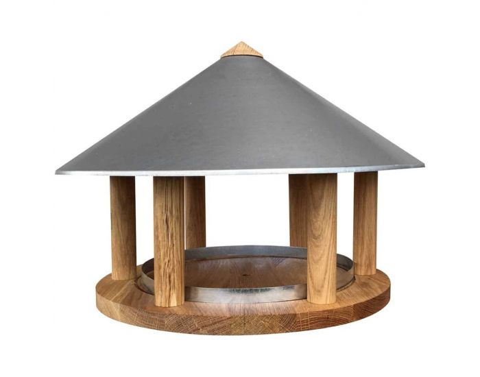 Mangeoire chêne ronde toit en zinc, une mangeoire pour oiseaux de la marque Esschert Design. Référence FB431.