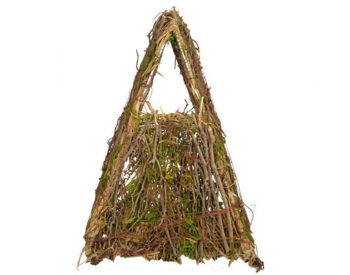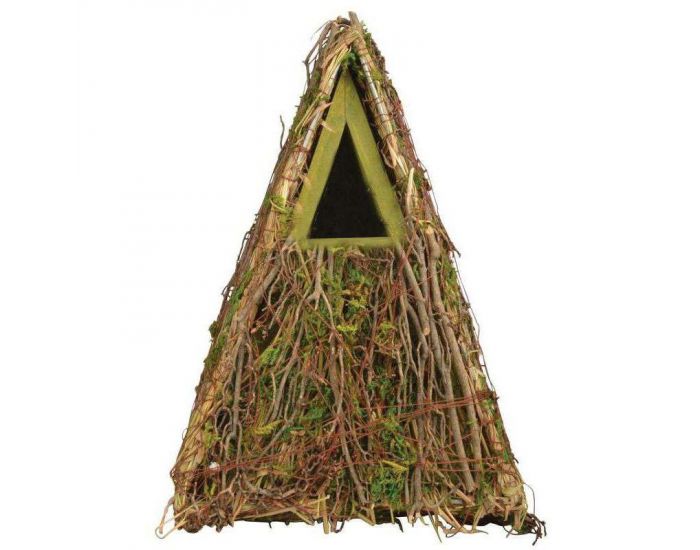 Ce nichoir ressemble à ce que peut bâtir seul ce petit oiseau vif et agile. Il est recouvert de brindilles et de mousse, offrant au Troglodyte une opportunité de nidification idéale.