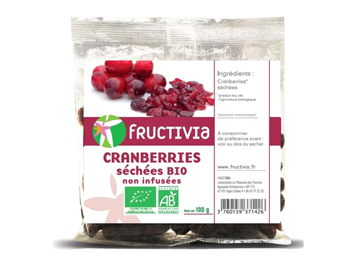 En sachet pratique, les Fruits Secs Cranberries Bio Fructivia sont à consommer sans modération !