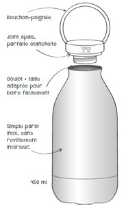 - Nettoyer avec très peu de produit la bouteille et le bouchon avant la première utilisation.