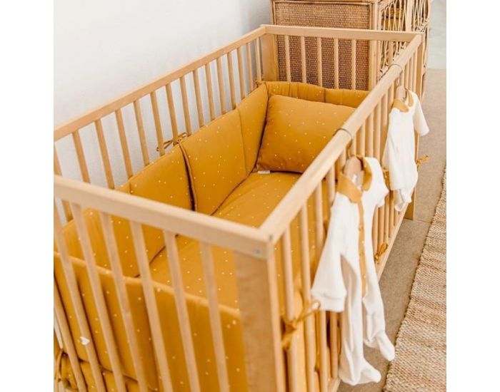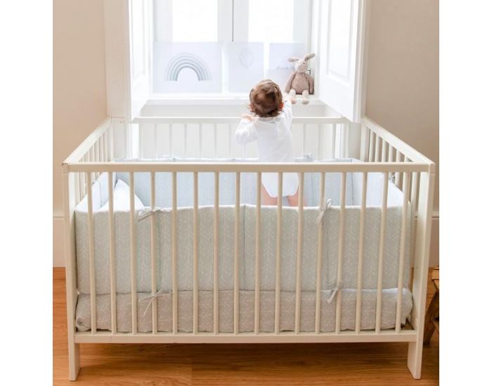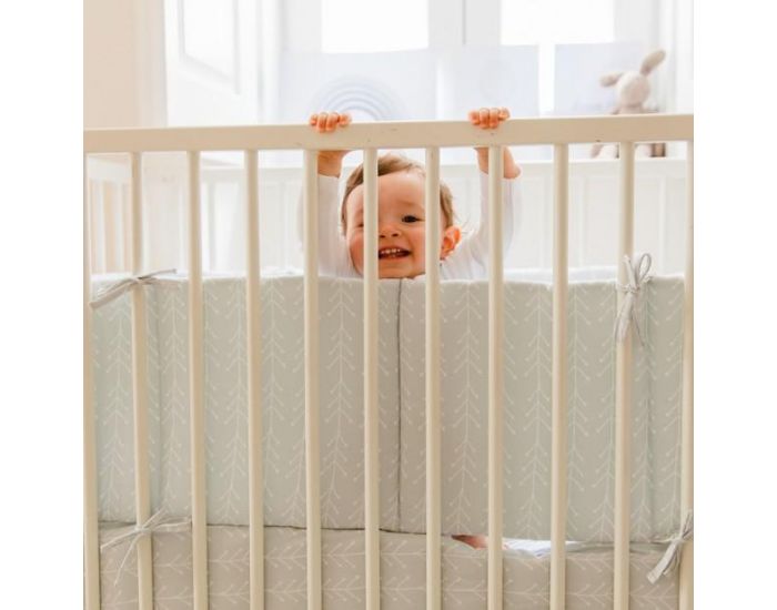 Il permettra à bébé de se sentir apaisé, comme dans un cocon. Comme bébé bouge beaucoup dans son sommeil, le tour de lit fera aussi office de rembourrage pour éviter qu'il se cogne aux barreaux du lit.