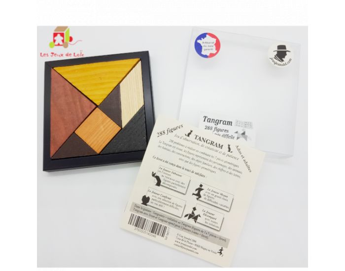 Le but est de réaliser l'une des figures choisies en combinant les 7 pièces en bois. 4 niveaux de difficultés et 288 défis en font un parfait jeu familial.