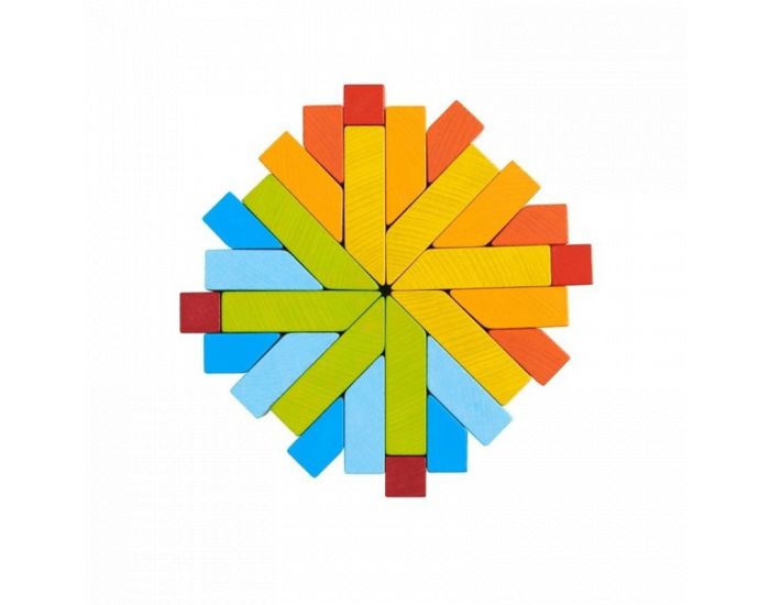 Ces 28 blocs de différentes couleurs permettent de créer plein de formes et de motifs différents en 3D ou non à l'aide des 15 cartes modèles double-face fournies ou selon son imagination.