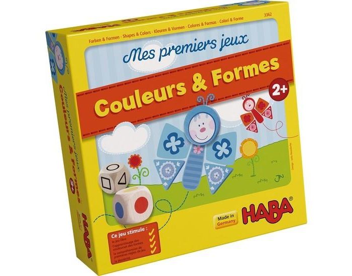 15 pièces en bois, 1 dé multicolore, 1 dé indiquant différentes formes, 3 plateaux de jeu, 1 règle du jeu.