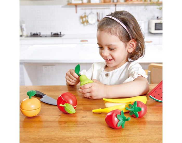Les fruits peuvent se couper comme des vrais, avec un système astucieux de petits scratchs.