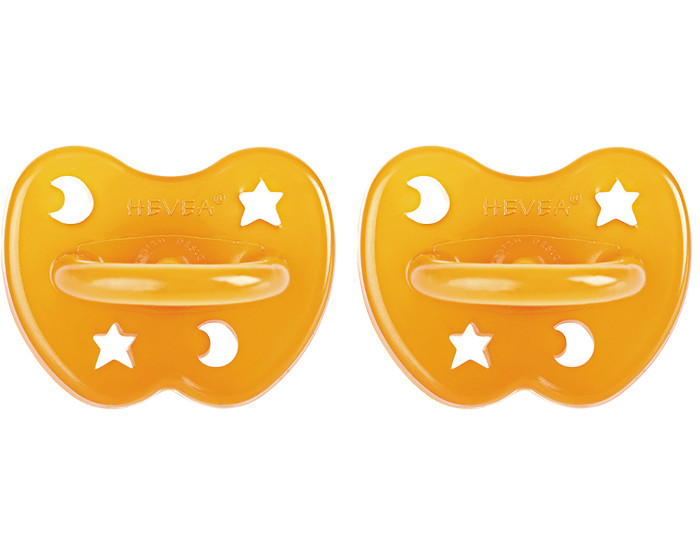 Le Lot de Sucettes Physiologiques en Caoutchouc Naturel Hévéa est unisexe avec ses jolies lunes et étoiles sur la sucette.