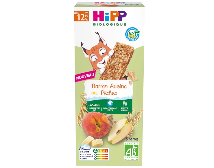 Les Mini barres Avoine Pêches HiPP peuvent se glisser dans le sac à main ou le sac à langer et servir d'en-cas à tout moment pour les petites faims de bébé dès 12 mois.