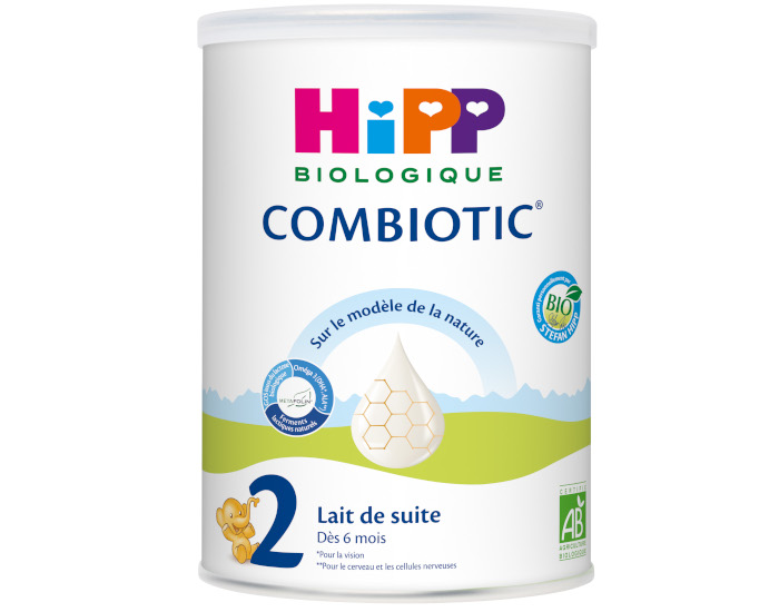 Le Lait de Suite 2 France Bébé Bio, élaboré en France, convient pour les bébés de 6 à 12 mois, en relais de l'allaitement maternel ou après le lait 1er âge France Bébé bio.