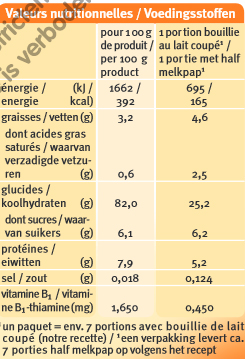 Bouillie au lait (repas du soir) :
