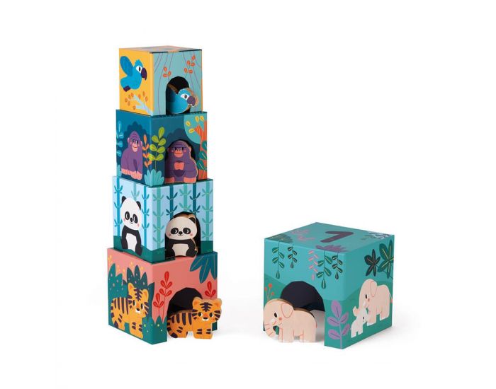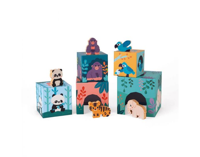 Pyramide et figurines Les Animaux, des cubes gigognes de la marque Janod.