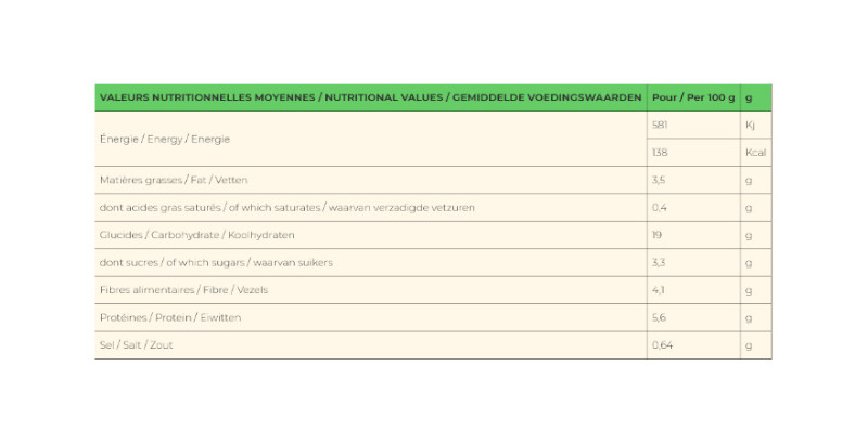 Ingrédients : eau, tomates cubées*, lentilles vertes* 14%, soja concassé* 12%, riz thaï* complet 8%, sarrasin* 5%, oignons en morceaux*, huile de tournesol*, sel marin, huile d'olive* vierge extra, plantes aromatiques*, épices*.