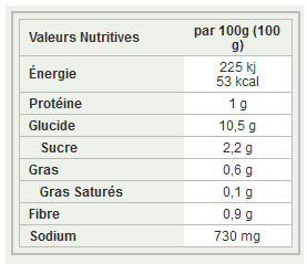Tableau des valeurs nutriotionnelles :