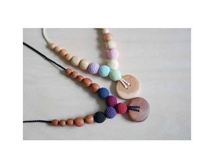 ♥ sont des accessoires parfait pour le portage. Lors du nouage par exemple, bébé est concentré sur le joli collier et ses différentes textures et se laisse donc plus facilement installer dans l'écharpe ou le porte-bébé.