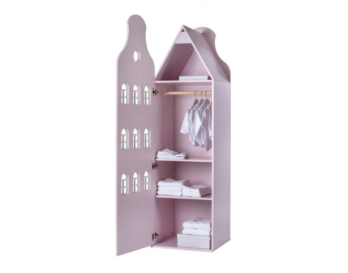 L'armoire Maison d'Amsterdam, avec son toit en forme de cloche, est née de l'imagination de la designer hollandaise Marie-Louise Groot Kormelink. Ne trouvant pas de meubles répondant à ses attentes pour ses enfants, a eu l'idée de créer une armoire pour enfant unique et pratique.