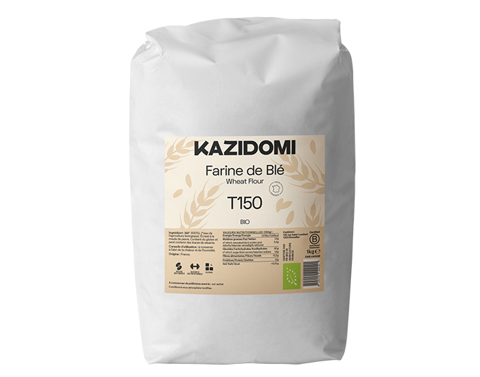 Le Farine Blé Complète T150 de Kazidomi est riche en fibres, source de protéines et possède un IG bas.
