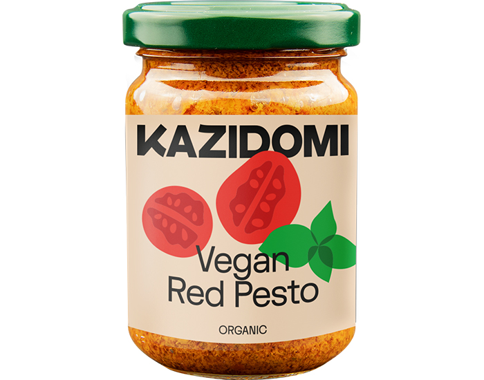 Le Pesto Rouge de Kazidomi est végan et offre un concentré de saveurs, réalisé avec de bons ingrédients provenant de cultures à ciel ouvert dans le Sud de l'Italie.